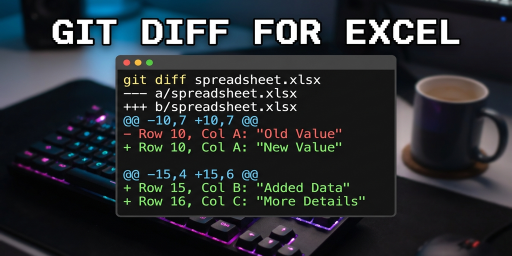 .gitattributes をコミットしておけば、チーム全員が同じ設定で差分を確認できる。Go 環境がない場合は Python の openpyxl を使った代替手段も活用してほしい。